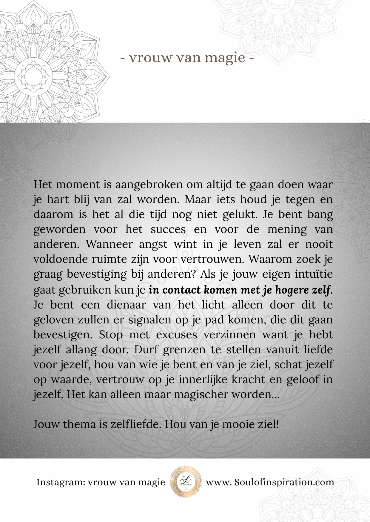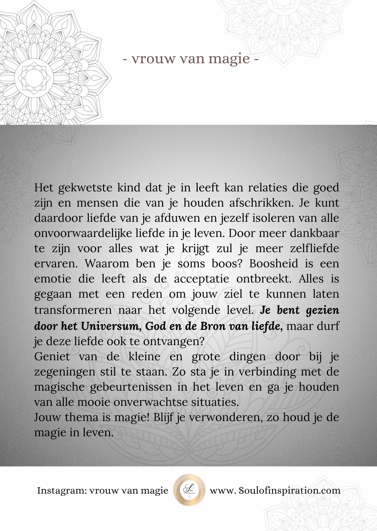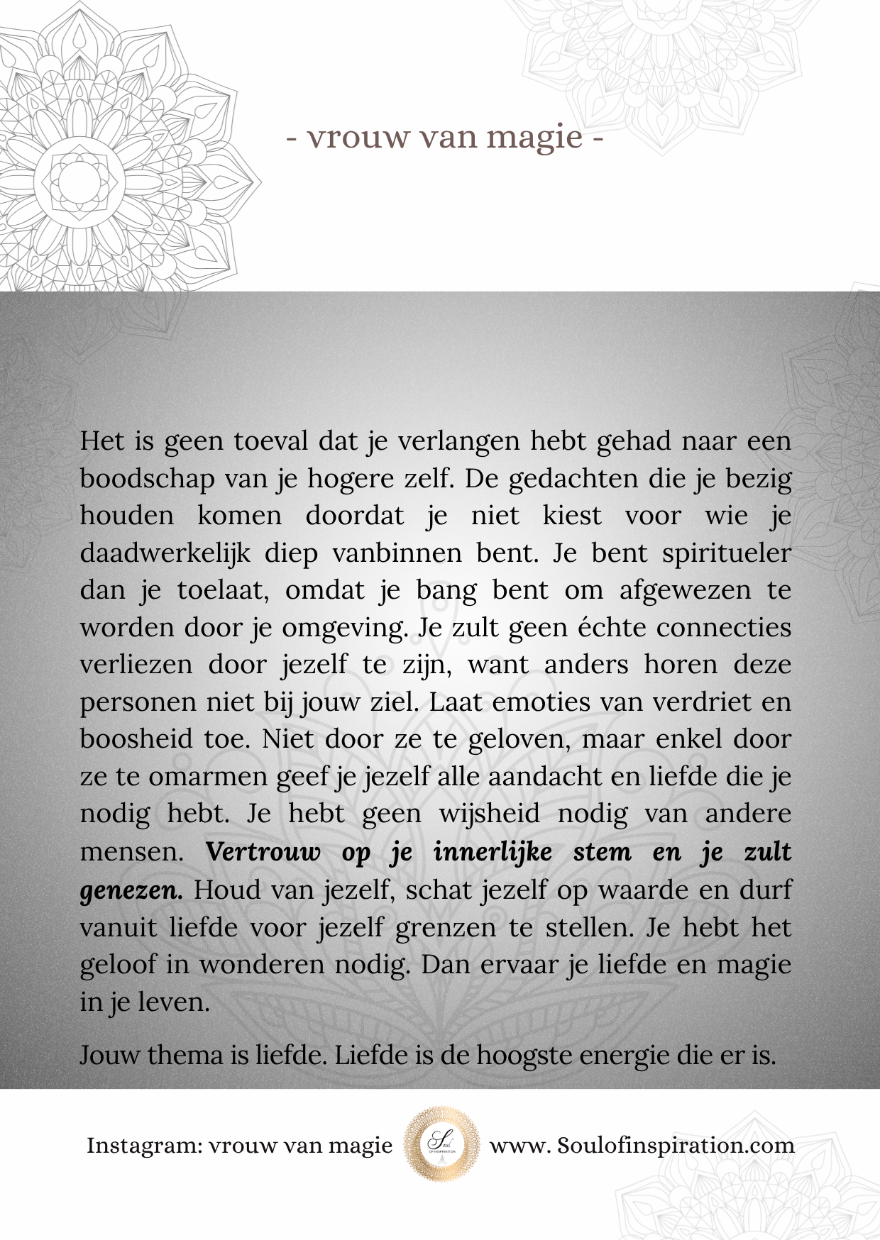 Wil je geïnspireerd worden door de podcasts over de liefde? Beluister kosteloos op Spotify en Youtube onder de naam: soulofinspiration.
