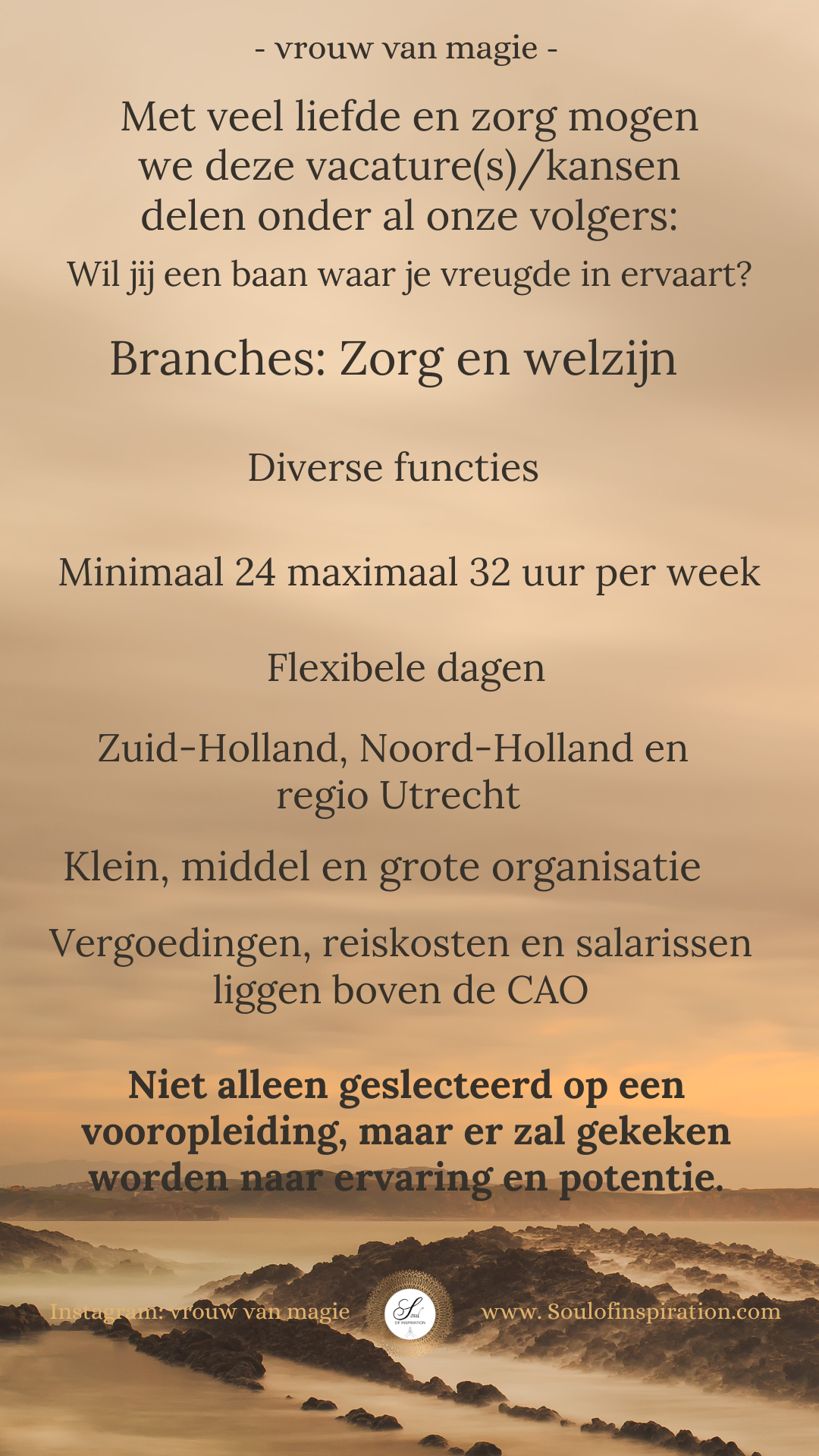 Vrouw van magie draagt zorg voor vacatures van maximaal 32 uur p/w.